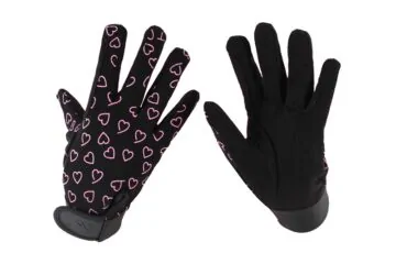 Яркие и практичные всесезонные перчатки с весёлыми принтами, ладонь из искусственной замши, верх — эластичный тканый материал, усилены в местах сцепления с поводьями, застегиваются на запястье липучкой. Материал: 60% нейлон, 40% полиуретан; 98% нейлон, 2% спандекс.